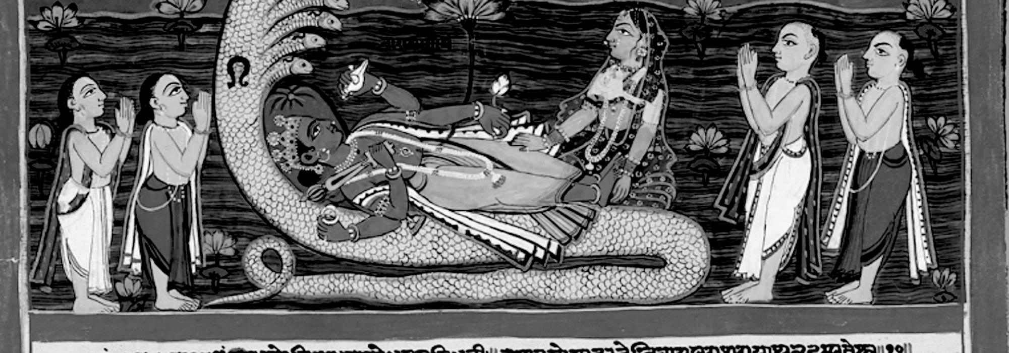 Among the ten renowned avatara-s of Vishnu, the Vishnupurana contains the stories of five: kūrma, varāha, nṛsiṃha, rāma, and kṛṣṇa. Of these, Sri Rama’s story is narrated very briefly while Sri Krishna’s story is highly elaborate. The famous story where nṛsiṃha slays the demon Hiranyakashyipu occurs in just one line and is not given any importance. The story of the ten avatara-s of Vishnu is provided in a detailed fashion in the Srimad Bhagavatam. It occupies a highly significant place in that Purana. Although the Vishnupurana emphasizes on the importance of Bhakti, this emphasis occurs in a subtle fashion. However, in the Bhagavatam, the exposition of Bhakti is exhaustive and extremely appealing. We can recall here that the very purpose of the Bhagavatam is to offer a discourse on the primacy of Bhakti. In instances where the bhāgavata (expositor of Vishnu Bhakti) describes Bhakti, he forgets himself and is immersed in the Bhagavan. It appears that the goal of the Bhagavatam is to elaborately explain every single facet of the Vishnupurana. However, in the Bhagavatam, we do not see the lilting linguistic style and simplicity of the Vishnupurana. When we consider other aspects such as the sameness of subject and phrasal similarity, we can conclude that the Bhagavatam is akin to a commentary on the Vishnupurana. However, it is our definite opinion that the author of the Bhagavatam certainly had the Vishnupurana in front of him.