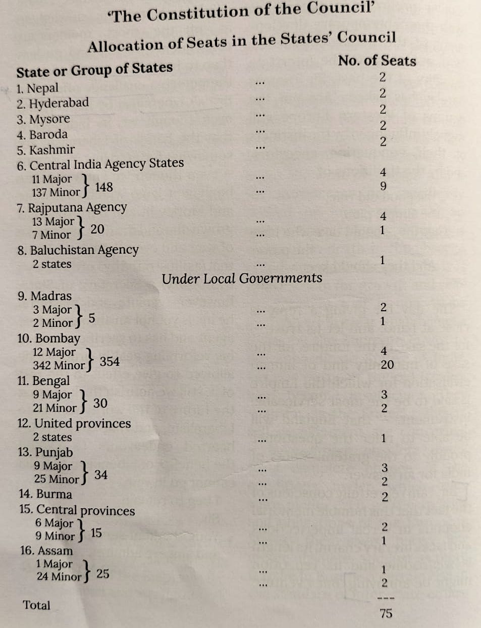 The climax of DVG’s tour de force is a visual chart titled, The Constitution of the Council in which he computes the allocation of seats in the States’ Council as follows: