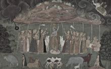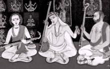 Three days after these happenings, the five Pāṇḍavas had their bath, wore fine white-coloured clothes, adorned themselves, proceeded to Virāṭa’s sabhā with Yudhiṣṭhira in the lead, and perched themselves on the royal seats reserved for kings. As usual, Virāṭa entered the sabhā to carry out his official duties, and the sight that he beheld! Seated there were the five of them, brilliant as burning fire. He saw Yudhiṣṭhira, who was seated like Indra among the devatas, and said in disdainful tone, “Were you not the one with whom I used to play dice?