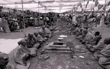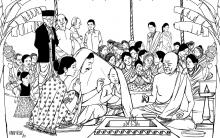 The entourage[1] that left from Hastināpura to Dvaitavana camped at a place near the villages of the cowherds. They set their tents up making sure that there was ample supply of water and shade, choosing land that was smooth and flat. They took a count of the cattle. Men and women of the village wore different costumes and entertained the guests with music and dance. Duryodhana rewarded them with a bounty of food and money. The entourage then headed out for hunting.