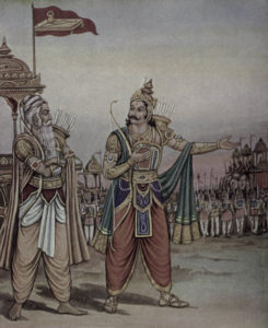 Nearly 5,000 years ago in Kurukshetra in Northern India, the hundred sons of King Dhritarastra fought the famous Mahabharata war against the five sons of King Pandu, King Dhritarastra’s younger brother. The former group was called the Kauravas and the latter, the Pandavas. Almost all major kings from the Indian subcontinent took part in this great war that was fought for eighteen days. Although the Kaurava army was larger, the Pandava army finally won the war.