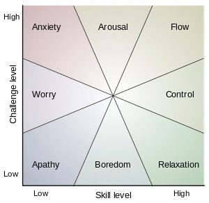 Csíkszentmihályi explains that when a person’s skills are at an advanced level and the challenges that he faces are also high on the scale, he attains ‘flow.’ The states preceding ‘flow’ are ‘arousal’ (when the skills are a tad lesser) and ‘control’ (when the challenges are a tad easier). The other states are not optimal and they don’t lead to happiness. In his 2004 TED talk, Csíkszentmihályi says with a teasing air that a good example for the state of ‘apathy’ is watching television – a task that neither requires skills nor is challenging.