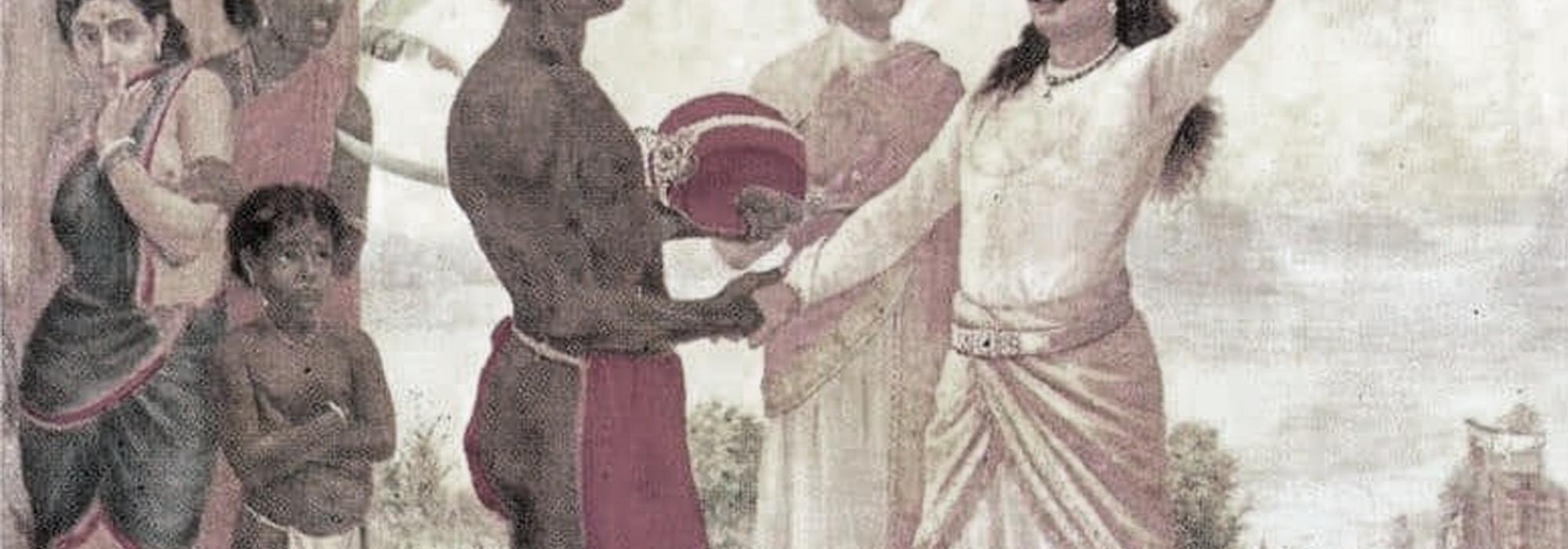 Śantanu made Devavrata the crown-prince of Hastināpura. All the citizens of the country were fond of Devavrata and so was his father. Four years elapsed. Once when Śantanu was going past the banks of the Yamuna, he encountered a strange but sweet smell. He went in search of the source of the smell and found a dark-eyed fisher-girl. He asked who she was and what she was doing there. She replied, “I am the daughter of the king of fishermen. I ferry people across the river to earn my livelihood; I do this out of a sense of duty. This is the task assigned to me by my father.” Śantanu instantly fell in love with the fisher-girl, who had celestial radiance, was of a charming form, and possessed divine fragrance. He went on to meet the girl’s father, King Dāśa and requested his daughter’s hand in marriage. Dāśa replied, “O king, having given birth to a daughter, it is my duty to give her hand in marriage to a suitable bridegroom. It is my pleasure to learn that you would like to make her your queen. I cannot find a better match than you. However, I have a humble request. If you would take an oath that you will fulfill my desire, then I shall happily give my consent; I know that you are an honest man and you will carry out your promised word.” Śantanu replied, “If you would tell me what you expect of me, then I can consider it. If it is agreeable to me, I shall abide by your terms. If not, I shall not.” King Dāśa said, “Maharaja! The son born to her through you should become the king of this land after your death. That is my wish!” The king did not agree to this. And so, devoting all his thoughts to the girl and mentally brooding over his plight, he returned to his town. Devavrata, who saw his father brooding and in deep thought, asked him, “Father! All is well with you. You’re safe and secure. All the kings are obedient to you. When this is the case, why are you lost in melancholic thought? You’re hardly speaking with anyone!” In response, Śantanu said, “My son, what you are saying is true; I am lost in thought. You are the only son and scion of this great lineage. Humans are mortal, not eternal. If any calamity should befall you, then our lineage will end. Indeed, you alone are superior to a hundred sons. And I too am not desirous of getting married all over again just for the heck of it. My only wish is that our grand lineage should not be destroyed. My son, wherever you be, you should be safe and healthy. But those who know dharma say, ‘One son is no son!’ You are a courageous warrior; one who can’t tolerate dishonour. You spend all your waking hours with weapons and martial training. For someone like you, even the end will come with weapons. Therefore, I have become concerned about what will happen if you die. This, my son, is the reason for my worry.” Devavrata was extremely intelligent. Thus, contemplating upon what these words could mean, he went straightaway to an old minister, a confidant of his father, and asked him what the reason for the king’s preoccupation was. As soon as Devavrata learnt the truth, taking with him a few senior kings, he went to King Dāśa and asked for his daughter’s hand in marriage with his father, King Śantanu. Dāśa welcomed them with great respect, honoured them, offered them a seat, and told Devavrata, “Noble sir, you being the great son of King Śantanu, are rightly capable to discuss his matters. I want to request something of you. If one lets go of such an admirable marriage alliance, whoever it may be, will repent later on. Who can be nobler than you people? But as the father of a girl, I feel that I should make a mention of this. My fear is that later on, this might lead to great hostility. And if you get angered by someone, then surely he will not live in peace! This is the only drawback I see in this alliance, nothing else.” Upon hearing these words, Devavrata replied, in the presence of all the kings, “Now, listen, I will tell you my decided opinion. Such words can’t uttered by anyone born before me, nor can they be uttered by anyone born after me. I will ensure that your wish is fulfilled. The child that will be born to this girl shall become our next king! This is the truth!” The fisherman said, “Having taken such a severe oath in the matters of state, O dharmātma, you are rightly capable of asking this girl’s hand in marriage for your father! But there is another thing. It is but natural that a girl’s father would say this. You taking this oath now in the presence of all these kings truly befits you. And it will be fulfilled. I have no doubt about it. But will your son remain silent? I have my own doubts about it!” Having heard his opinion on the matter, Devavrata said, “King Dāśa! Listen to the words that I utter with these kings as witness. I have already renounced my kingdom. And as for children, I have come to this decision; I will forever remain a celibate! Even though I shall not have children, I will attain the highest heavens!” Delighted upon listening to this oath of Devavrata, with his hairs standing on end, Dāśa said, “I give my daughter!” Devatās, ṛṣis, and apsaras showered flowers from the sky on young Devavrata and praised him by calling him “Bhīṣma!” - the one who took the terrible oath! Bhīṣma then told the girl Satyavati, “Come mother! Please climb the chariot. Let us go home!” and took her to Hastinapura; then he explained the entire episode to his father. All the kings praised him with the words, “He is indeed Bhīṣma!” Highly impressed by this arduous feat of his son, Śantanu conferred upon him a boon, saying, “May you conquer death! Until you desire for death, it will not come to you!”