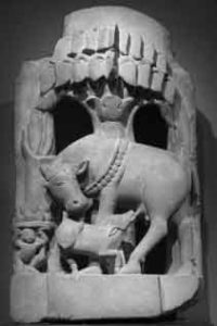 The sage went to Sūrya of a million rays with folded hands and said, “I am Vasiṣṭha.” Sūrya said, “You are welcome, revered sage, please tell me what you want.” Vasiṣṭha requested him to offer his daughter Tapatī in marriage to King Saṃvaraṇa. Sūrya gladly agreed and handed over his daughter to the sage, who in turn brought her to the king. In this manner, due to his intense tapas, Saṃvaraṇa won over Tapatī with the assistance of Vasiṣṭha. He married the maiden in a traditional manner. The king gave the responsibility of the kingdom to his ministers and stayed back in the forest with his beloved. He spent twelve years in the forest, enjoying his time playing water-sports with his wife. Indra, the deity of rains, did not shower rains in Saṃvaraṇa’s kingdom for twelve years. The land was filled with people who were starving and it looked like a kingdom of ghosts. Looking at the condition of the people, Vasiṣṭha approached the king. In deference to the sage’s words, the king returned to his kingdom with his wife and the people rejoiced his return. Peace and rains were restored in the kingdom. Saṃvaraṇa gave birth to a son named Kuru from his wife Tapatī. Arjuna was thrilled upon hearing the story. He requested Citraratha to tell him more about Vasiṣṭha. The Gandharva said, “Vasiṣṭha was a great sage who had won over desire and anger through tapas. This is something that even the deities haven’t been able to do. The sage did not resort to any harsh deeds nor did he give free vent to his anger even when he faced the insolence of Kauśika. Though he was capable of bringing his children back to life, he never did so, for he had great reverence for the dharma set by Yama. He was the spiritual advisor to the kings of Ikṣvāku’s lineage and they were able to conquer great lands. Having him as their purohita, the Ikṣvāku kings performed several yajñas. Thus I advise you to procure a capable purohita, who will guide you in administering a kingdom. A person who is born a kṣatriya and would like to rule a kingdom should have an able purohita. Arjuna then asked the Gandharva the reason behind the fight between Viśvāmitra [previously called Kauśika] and Vasiṣṭha. The Gandharva then started narrating the following story – There lived a king named Gādhi in Kānjakubja and he had a valorous son named Viśvāmitra. Once, he set out on hunting and after a while, to relieve of his tiredness, he came to Sage Vasiṣṭha’s āśrama. The sage welcomed him with great respect and was a great host. He called his pet cow Kāmadhenu and instructed her to give everything that Viśvāmitra desired. The cow, with its divine powers, manifested great amounts of tasty food and fed the king and his retinue with a sumptuous meal. The king was greatly impressed and asked the sage to give him the divine cow in exchange for ten crore cows or his entire kingdom. Vasiṣṭha turned down the king’s offer; the enraged king tried taking away the cow by force. The king’s men beat the cow with whips and sticks and the cow faltered around in pain, calling out ‘Hambā!’ The cow did not leave the āśrama though it was inflicted with so much of pain. Kāmadhenu came to Vasiṣṭha and said, “You see the king’s men ill-treating me. You see me calling out in pain, like an orphan. Yet why do you ignore me?”