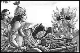 Time passed thus for a while. Once Arjuna told Kṛṣṇa, “The weather has become bad; the heat has gotten worse! One of these days, let us take all our friends and go to the banks of the Yamunā – that is my desire!” Kṛṣṇa replied, “I too have felt a craving to dance in the waters awhile.” Thus, they took all the people they liked and went to a nice spot on the banks of the Yamunā. A variety of trees had grown there and it was almost like a grove; wherever one cast a glance, one could see entertainment pavilions; there was a lot of food and drink for everyone; they all ate and drank merrily; everyone played together, sang, laughed, made others laugh, gossiped; they played the vīnā, flute, and mṛdaṅga; Draupadī, Subhadrā and other women merrily participated in the revelry while Kṛṣṇa and Arjuna sat on a beautiful seat at some distance, discussing matters of enjoyment and recounting tales of bravery. At that time, a brāhmaṇa came to them; he was a tall man with a golden-hued body; his brilliance was akin to the rising sun. When Kṛṣṇa and Arjuna paid their respects to him, he said, “Sirs, my stomach is huge; I eat a great deal; my stomach is to be filled owing to your compassion!” Arjuna asked, “What food do you eat? If you let us know, we shall try to bring that to you!” He replied, “I don’t eat the food that everyone eats; I am Agni; I want to consume the whole of this Khāṇḍavaprastha; but Indra is protecting this forest; if he sees a spark in the forest, he will shower rains; the reason being that his friend Takṣaka and his family reside here; using that as the pretext, several animals and birds have taken refuge here. You are well-versed in the use of weapons; if you show compassion, I can consume this forest.” Arjuna said, “O Agni! Indeed I have several divine weapons; but I don’t have a bow that is befitting my strength; I shoot arrows extremely fast; therefore any amount of arrows fall short; if I desire to fill up as many weapons as possible, I don’t have a chariot that will accommodate them all; neither do I have horses capable of pulling such a chariot; Kṛṣṇa too is in the same position; he doesn’t have weapons that match his courage; what shall we do? If you can procure the suitable equipment, whatever is possible by human effort, we shall do!” Agni meditated on Varuṇa and invited him there; from Varuṇa, Arjuna received the Gāṇḍīva bow, the inexhaustible quiver of arrows, a resplendent chariot drawn by divine horses that shone like silver and a flagstaff with the emblem of Hanumanta. Varuṇa gave Kṛṣṇa the Sudarśanacakra and the Āgneyāstra. With the Sudarśana, one could kill anyone – devas, humans, rākṣasas, piśācas; after killing the desired person, the discus would fly back to the one who threw it. Apart from this, Varuṇa gave Kṛṣṇa the Kaumodakī mace. Thus equipped with divine weapons and chariots, Kṛṣṇa and Arjuna said, “Now let the devas or asuras come to battle us!” The forest was alight with a huge fire. Kṛṣṇa and Arjuna sat in chariots on either side of the forest fire, ensuring that no animal escaped from the fire. Due to that, thousands of animals and birds cried out in pain and died. Some were half-burnt; the eyes burst out of some; some tried to jump but fell back into the fire and died ultimately; some held on to their children or parents and lost their lives holding tight to their kinsfolk. All the water bodies in the forest began boiling and all the fish and tortoises in those waters were boiled and began floating on the surface. Agni was absolutely delighted! Devendra showered a torrential rain; the lightning and thunder were frightening; but since Arjuna had created a roof of arrows for the entire forest, not a drop of water could pass through and douse the fire. Agni was satiated. But Takṣaka escaped and went away to Kurukṣetra; apart from him, only six creatures survived the wildfire: Takṣaka’s son Aśvasena, the rākṣasa Maya[3], and four Śārṅgaka birds[4]. Devendra sat on his Airāvata, held his Vajra weapon in his hand, and accompanied by the devatās, came on the scene [and battled Kṛṣṇa and Arjuna] but it was of no use.[5] Finally, he showed his admiration for Arjuna and asked him what he wished for. Arjuna asked for a few weapons. Indra gave him a time estimate and said that when Mahādeva is pleased with Arjuna, he would hand him all those weapons.[6]