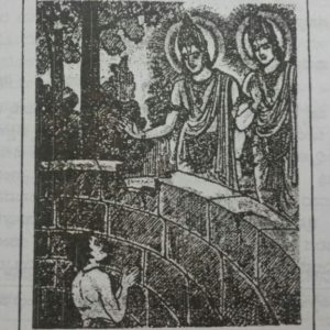 However, Upamanyu still refused to follow the example set by his guru and wanted to consume the apūpa only after offering it to him. The Aśvinī-devatas, extremely pleased with his sincerity blessed him by saying – “We are impressed by your devotion. Your guru’s teeth have turned into iron and your teeth are going to turn into gold. You are going to gain divine eye-sight” and vanished. Upamanyu came out of the well and received his guru’s blessings. The guru said “You will be an expert in various fields of knowledge. All the Vedas and dharma-śāstra will always remain etched in your memory”