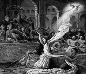 The problems in the Mahābhārata start with Śantanu himself. He is not an ignorant person. The poet of the Mahābhārata has called him a mahātmā, a great soul. Gaṅgā would not have come to him merely by his charming face. And why shouldn’t such a person have got married in the traditional way and managed a family life smoothly? Should he have fallen for a woman on the street—however beautiful, pure in character and respectable she might have been —who imposed so many conditions on the marriage and caused him immense pain which he silently endured?  (Let us assume that they got married by gāndharva-vivāha, i.e., marriage with mutual consent, out of love). He had not one, but eight children from her. Of these, she threw seven of them away to their deaths. Matysagandhī (i.e., Satyavatī) and Kunti, who came later, were given more importance.