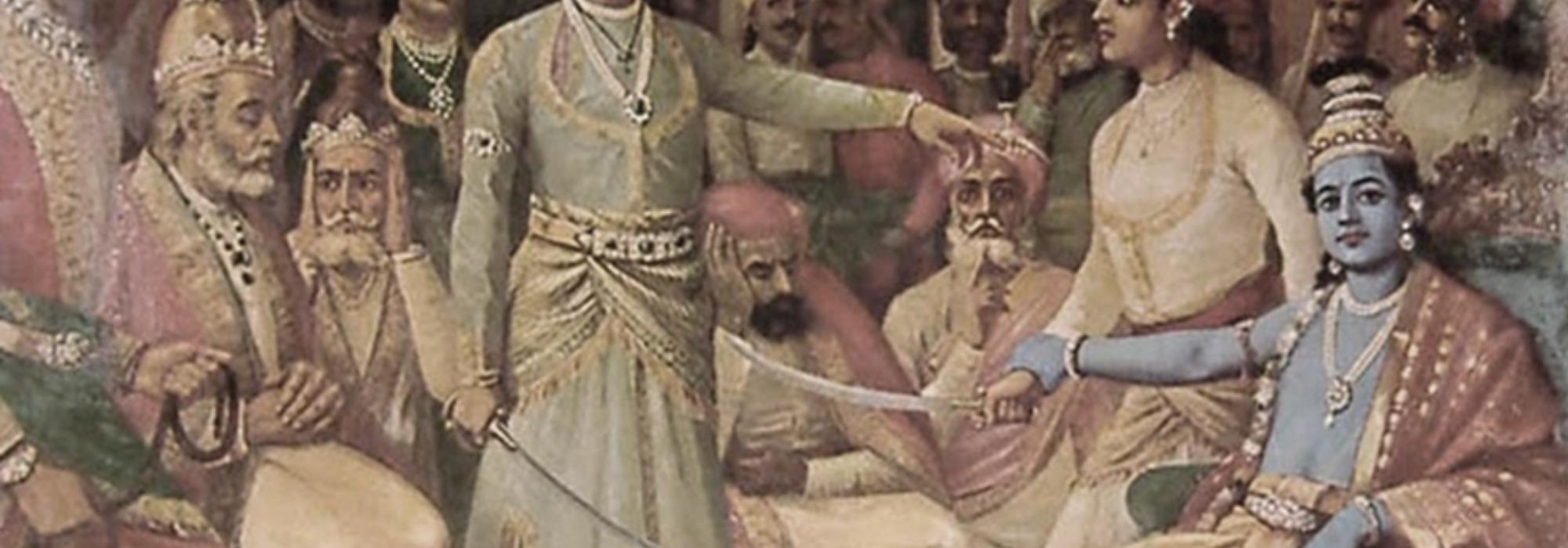 As everyone settled down at the places allotted to them, Kṛṣṇa spoke in a voice that resounded like thunder that precedes a heavy downpour. He addressed Dhṛtarāṣṭra – “O revered king! I have come here to ease the relationship between the Kauravas and the Pāṇḍavas and to strike a treaty of peace between the brothers. The family of Kurus is known for its high values in knowledge, virtue and character. Compassion, grace, empathy, non-violence, justice, patience and honesty are said to be embodied in the Kuru dynasty. Born to such a divine lineage, your children have brushed aside all these values and act in a wicked manner – something that is so far unheard of. This will lead to a great tragedy and the earth will shudder. If you ignore the impending danger, the consequences will be severe. If you make up your mind, you can try avoiding it. I’m here with the belief that it is not impossible to strike a chord of peace. It is right within our control. Your children and you only need to co-operate. It is my responsibility to convince the Pāṇḍavas. If you take the assistance of the Pāṇḍavas and rule the kingdom in a dhārmic manner, who is going to ever question you? You can win over all your enemies and rule the entire world. On the other hand, if you blindly follow the whims of your children, the lineage will soon be ruined. Is that dharma? Tell me, O revered king! If the Pāṇḍavas kill your children or if your children kill the Pāṇḍavas what kind of comfort are you going to gain? Both the parties are experts at fielding weapons and are well trained in warfare. If they come down to the battlefield, it will only result in massive bloodshed and millions of dead bodies will get scattered across the battlefield. If they set out to war, they will be followed by several kings who support them and the kings will be followed by their citizens. In this way, the entire world will be in ruins. Kindly prevent such tragic course of events, your highness! Let the kings assembled here forget their enmity. Let them have a friendly feast and return to their kingdoms peacefully! You took care of the Pāṇḍavas when they came as orphans after losing their father and it is your duty now to protect them too. The Pāṇḍavas have conveyed their respects and salutations to you. They say – ‘We have obeyed you and have spent twelve years in the forest and one year incognito. Pray, adhere to dharma and give us our rightful share! We have undergone great difficulties. You are now our sole parent. As an older person, please correct us when we go wrong. Lead us on the right path!’ They have spoken in a manner that befits them and also adheres to dharma. Tell us if there is any solution other than giving them their rightful share. Let the kings assembled here think about it and tell us their opinion too. Dharmarāja has been honest and just in his behaviour towards you all. You tried to have them burnt alive and you sent them away from their homeland. And yet, they sought refuge in you. You sent them to Indraprastha. They established their city there, defeated several kings, and put them under your emperorship. The Pāṇḍavas possess such a noble heart but were again subject to Śakuni’s crooked games and they lost their wealth in the game of dice. They were helpless when Draupadī was brought to the court and humiliated amidst the Kurus. Yudhiṣṭhira sat there without speaking a word as he has always adhered to the kṣatriya-dharma. I seek the welfare of both the Pāṇḍavas and the Kauravas. O King! Don’t mistake injustice for justice and adharma for dharma! Don’t push your citizens into ruin. Stop your children from treading the path of adharma. The Pāṇḍavas need to be taken care of by you and they will look after your well-being, in return. They are ready to fight a war too. Give your consent to whatever you deem to be lawful!”