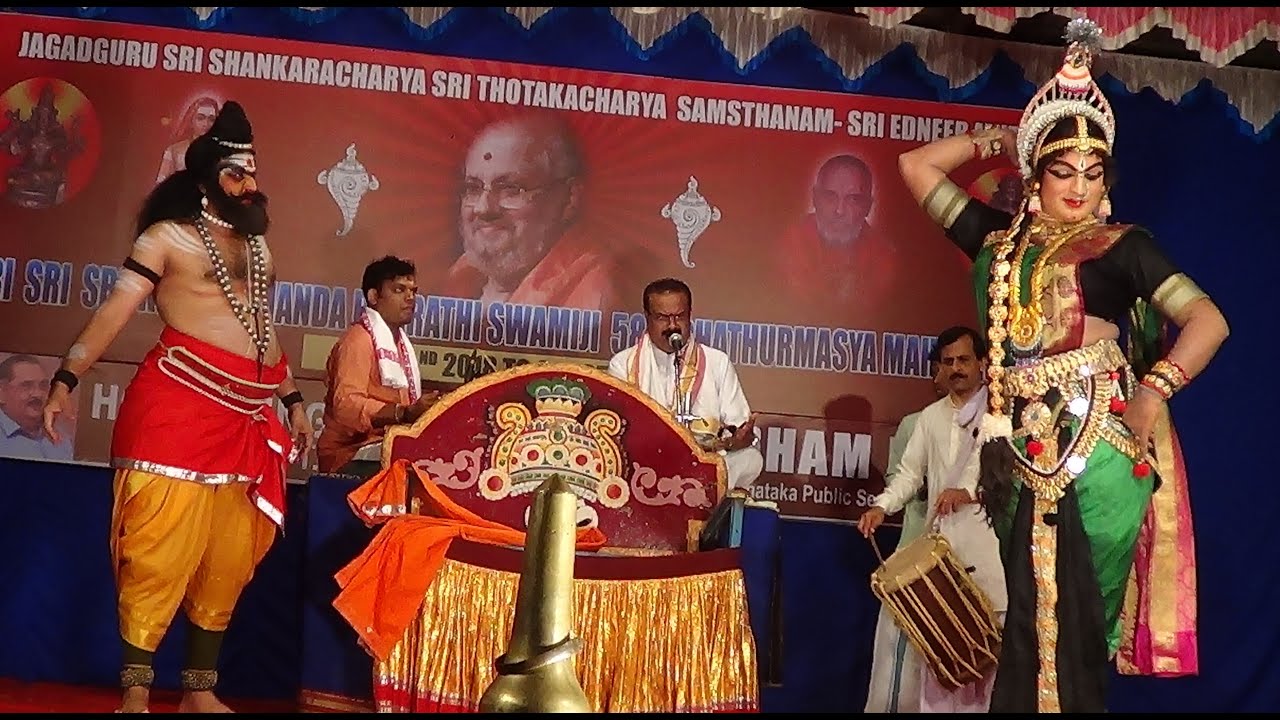 When it comes to Baṇṇada-veṣa (demonic characters), Tèṅkutiṭṭu stands out for its brilliance and it is advisable for Baḍagutiṭṭu to adopt some of its features. In the case of baṇṇada-veṣa, the sthāyi-bhāva – permanent, durable emotions and features of these characters are represented on the face by means of the mask-like make-up that brilliantly caters to the purpose; this has been richly developed in Tèṅkutiṭṭu. Such judicious borrowing will never corrupt the purity of the different schools. Scholars like Dr. Raghava Nambiar have shown through their research that many features of the āhārya of the present-day Baḍagutiṭṭu were also integral aspects of Tèṅkutiṭṭu in the previous century. Such positive features have to be seriously studied and suitably adopted. Mutual sharing between the two schools will only enhance their strengths.