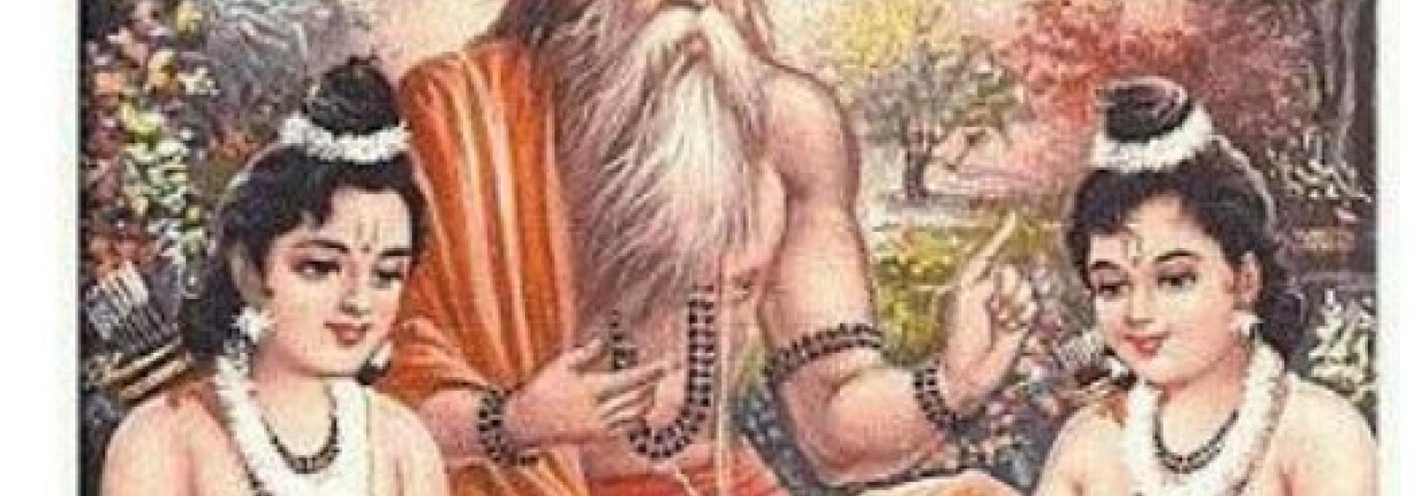 After having composed the epic, Vālmikī wondered how he could propagate it widely. Even as he thought so, Kuśa and Lava, the royal princes well-versed in dharma and endowed with musical voices, bowed down to the sage, touching his feet. Looking at the twins who were intelligent and well-versed in the Vedas, Vālmikī taught them the entire Rāmāyaṇa, which was a creative elucidation of the Vedas. It was also the Sītā-carita and Paulastya-vadha. The epic poem was equally melodious, whether recited or sung. It was evocative of all rasas, could tuned to music and rendered to the accompaniment of a vīṇā. The handsome twins, who resembled Rāma committed the entire story to their memory and heart. They recited it exactly as they were taught in the assemblies of brāhmaṇas and sages.