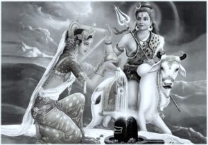 Shiva’s wife is Parvati. In her previous birth, she was Sati, and was married to Shiva. When she was adamant and wanted to return to her father’s place for the yajña, Shiva didn’t accompany her. And when she was sacrificed in the dakṣa-yajña, Shiva went mad with rage. He was shattered at her death and avenged it. He lamented for her and waited until she took another birth. When Parvati tried to win over Shiva through her physical beauty, Shiva didn’t respond to that arrogant stance. He even went to the extent of burning Desire. But when Parvati performed rigorous tapas, he knelt before her and told her that she had completely won him over. While Shiva didn’t tolerate his wife’s adamancy or arrogance, he immediately fell for her goodness of heart. He is inseparable from his consort. Adi Shankara says that without Shakti, Shiva cannot even move an inch!