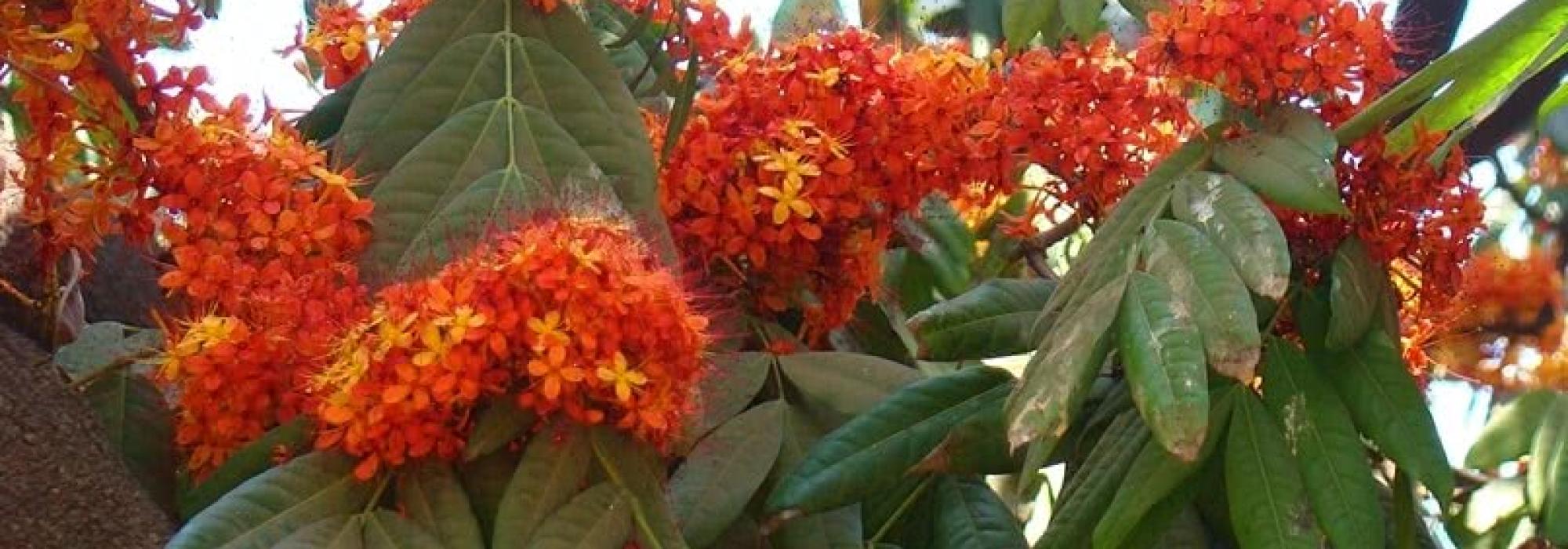 Hanūmān then leapt from Rāvaṇa’s palace on to the wall of the aśoka-vana. The grove was filled with many kinds of trees that were blossoming to fruit and flower. As he searched for Sītā, the vānara startled birds that had been peacefully sleeping. The birds flew away, striking the trees with their wings and flowers of every colour showered down from the trees. Hanūmān, who was thus, fully covered in colourful blossoms sped around the grove and the creatures there thought he was Vasanta incarnate! Shaken by the vānara, the trees shed off their leaves and flowers and stood with their naked branches spread out; the entire grove looked like a young woman with dishevelled hair, her makeup smudged, her lips bruised with kisses, and her body bearing the marks of nails and teeth. The grove was full of various kinds of pathways, fields, and ponds filled with various kinds of flowers. It also had a tall mountain and a stream flowed down from it like a beloved woman who was throwing herself down from her beloved’s lap out of anger. The trees on either side of the stream with their branches immersed in it, looked like close friends who were trying to refrain the woman. The vānara watched the stream as it flowed back to the mountain, like a woman graciously returning to her lover, who had propitiated her. There were many golden trees and platforms there; due to their reflected radiance, Hanūmān, for a moment, thought, ‘I am all gold!’