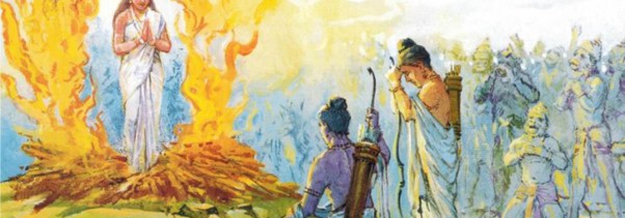 Rāma said, “Sītā had to be subject to this test and proven innocent to the three worlds, as she had dwelt in the rākṣasa’s kingdom for a long time. If I had not put her to this test, the world would have said, ‘Daśaratha’s son Rāma is a lustful fool!’ I know well that Maithilī would love none other and is always devoted to me. But to prove to the world her character, I simply stood by as she entered fire. I wanted the world to have faith in her. Rāvaṇa could not have violated Sītā, who is always protected by her own tejas. She is inseparable from me just as is radiance from the Sun. Janaka’s daughter is proved flawless to the three worlds and I can never give her up. Moreover, all the revered and dear ones in the world have advised me so for my own good.”